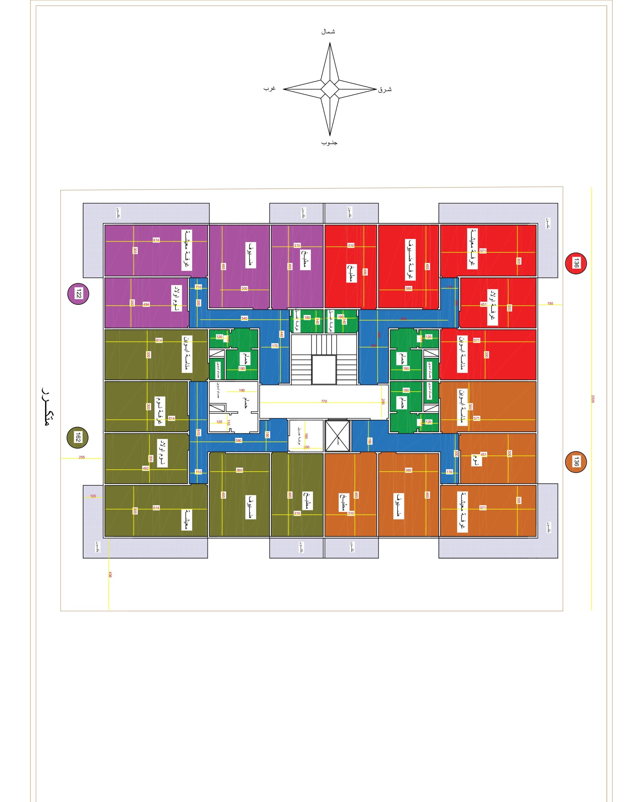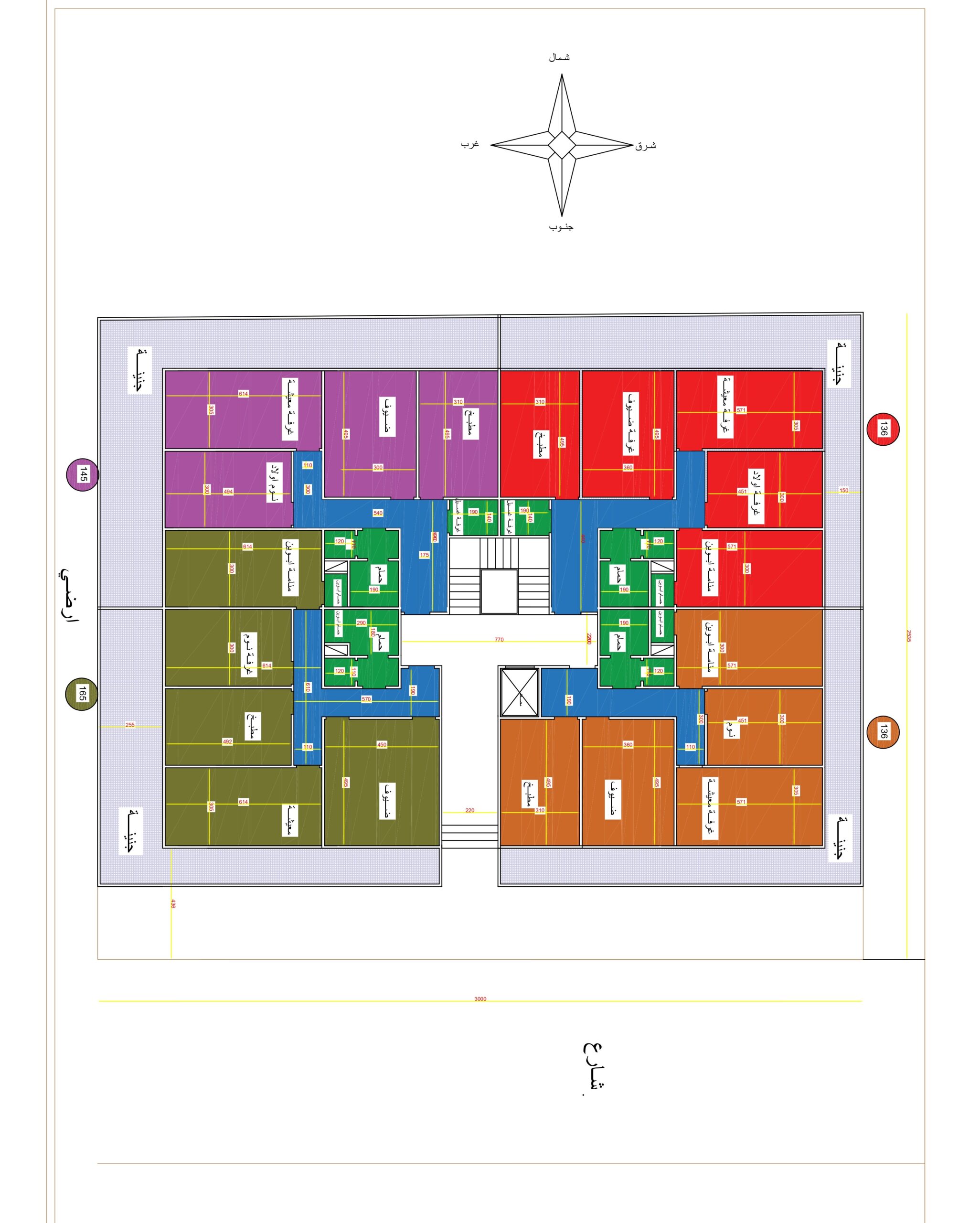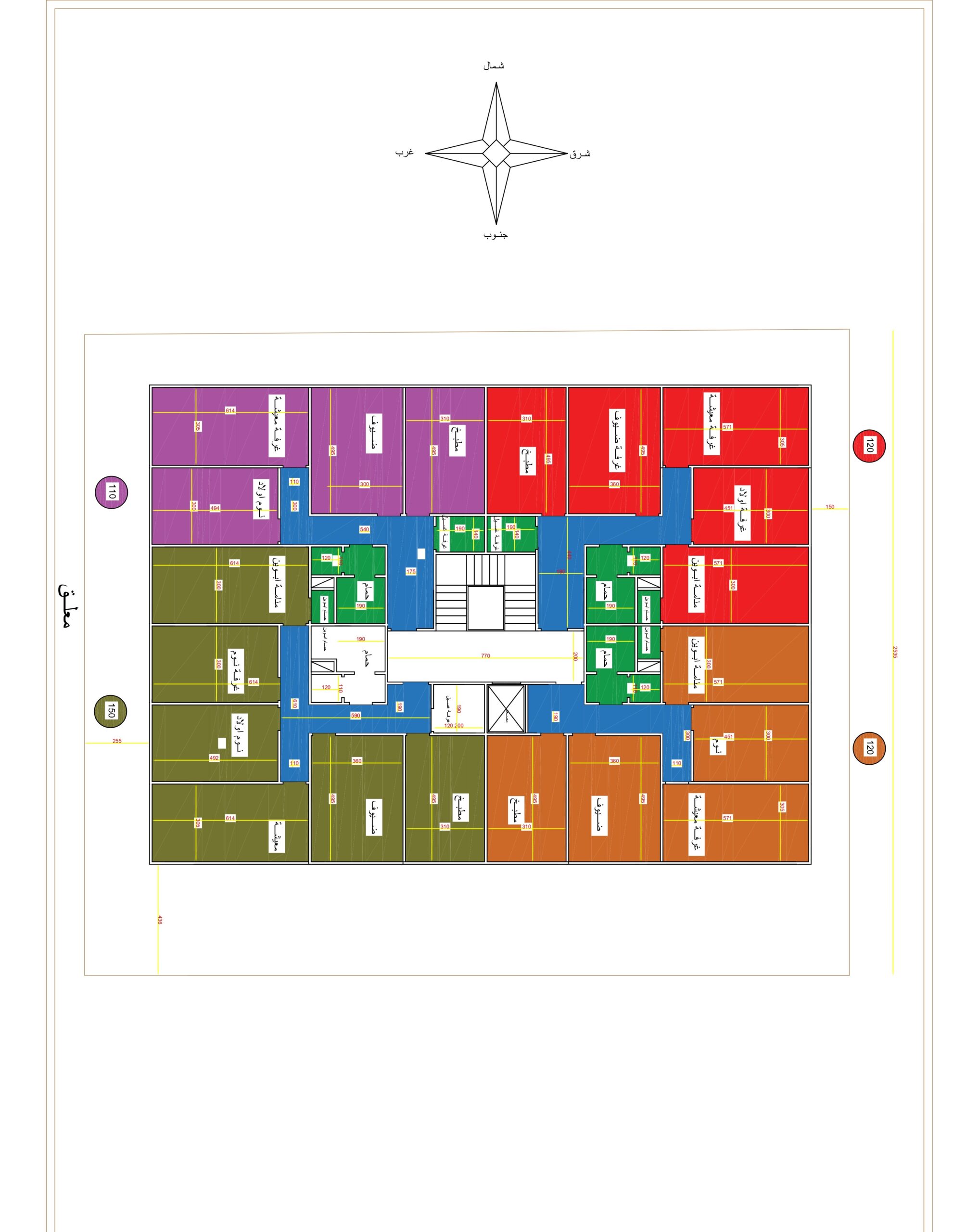 عدد الشقق: 4 شقق سكنية في كل دور.